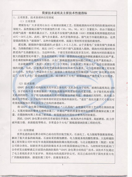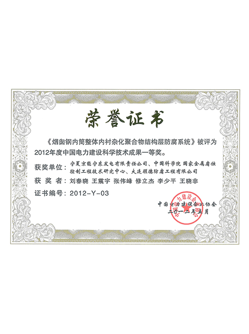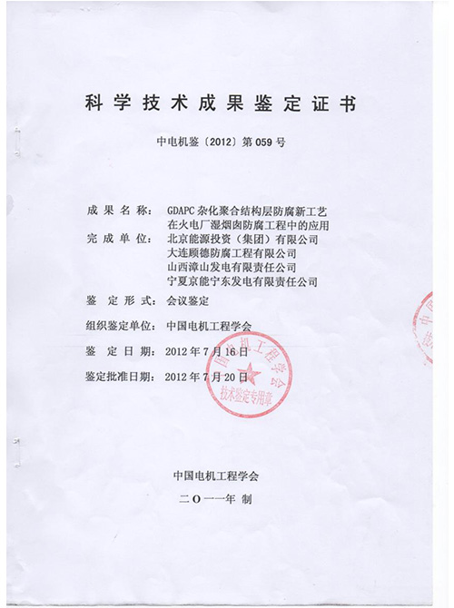 2012年度煙囪防腐科技成果證書